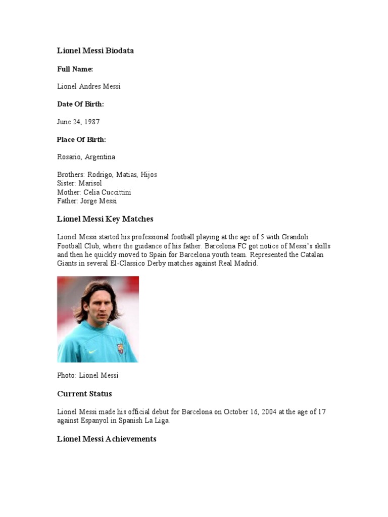 Lionel Messi Biodata In English