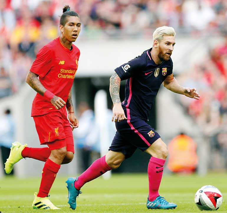 Liverpool S Roberto Firmino Links Up With Barcelona Duo Lionel Messi And Luis Suarez Liverpool Echo
